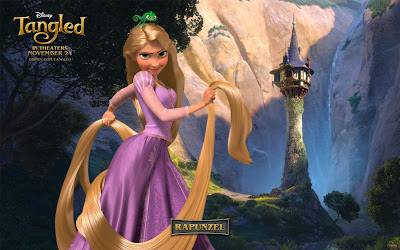 about Rapunzel came out on DVD. It’s the animated film version of a German fairy tale in the collection by the Brothers Grimm published in 1812. In the original Grimm tale, Rapunzel is locked away in a tower. One day she “lets down her hair” to a prince who climbs up to her. Her clothing soon after becomes tight around the belly and within nine month’s time, it becomes quite the baby-bump. She is eventually freed and marries the prince and then delivers twins. Fortunately the Disney version cuts out the tower fornication and the pregnancy details. Instead, the Disney version is about an evil stepmother who desires the rejuvenating power of Rapunzel’s magical blond hair.